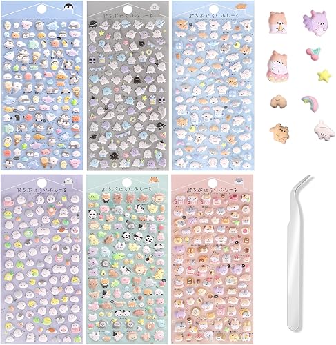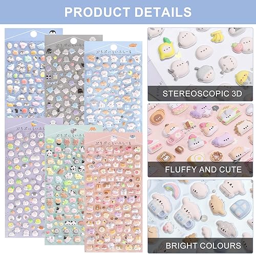APOMOONS 6PCS 3D Stickers Scrapbooking & Pincettes, Autocollant Kawaii Autocollant Scrapbooking Stickers Kawaii pour Enfants, pour les étuis de Téléphone Portable, les Cahiers, les Agendas