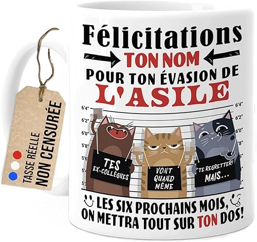 Cupdarling® Tasse Depart Collegue de Travail Personnalisé - Félicitations pour ton Évasion - Mug Humour Travail - Collègue de Travail Homme et Femme Bureau