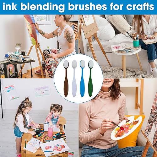 4 Pièces Pinceaux de Mélange d'encre Colorée, Outil de Mélange d'encre pour la Fabrication de Cartes, Assortiment de Couleurs avec Poignée à Code Couleur