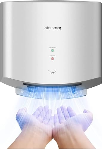 interhasa! Sèche-mains avec capteur infrarouge automatique - Silencieux - Pour commerce et maison - 1250 W - Argenté