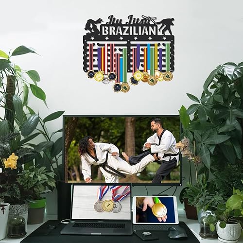 SUPERDANT Porte Medaille de Jiu Jitsu Brésilien Porte Médaille de Sport Organisateur de Médailles en Métal Support Medaille Fixation Murale Cintres de Course 24 Crochets en Fer Antidérapants