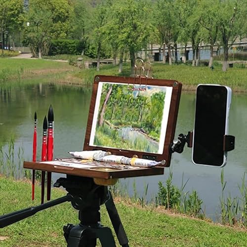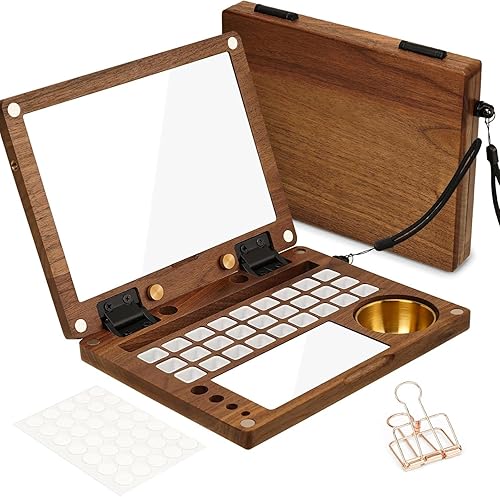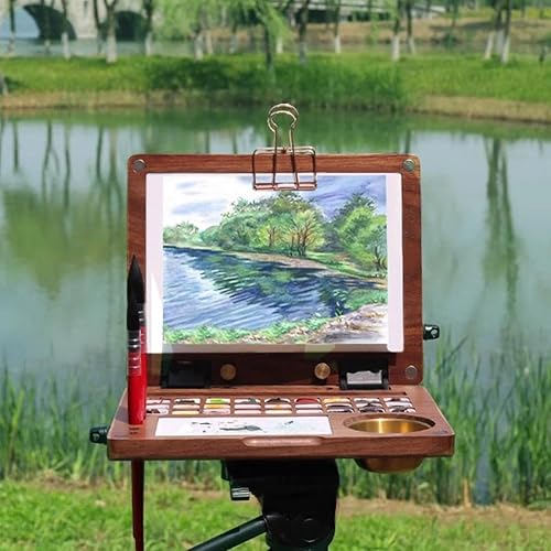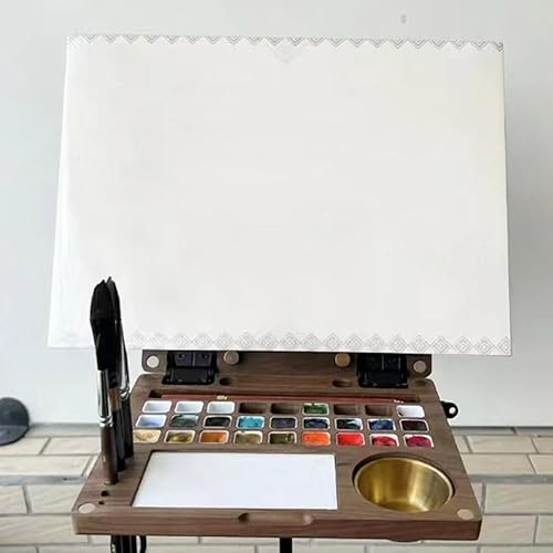 Palette d'aquarelle en bois, boîte vide multifonction en noyer noir, voyage à l'extérieur comme chevalet, palette de peinture aquarelle avec 27 puits, fente pour pinceau et supports, tasse de
