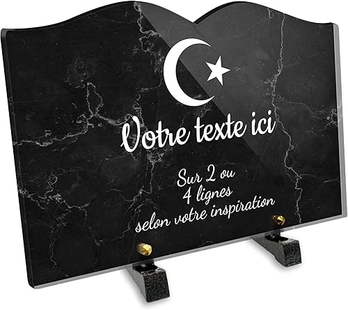 Plaque funéraire Livre Personnalisable en plexi Motif Islam, différentes Tailles, épaisseur 6mm, personnalisée sur Plusieurs Lignes 22-5x15 cm