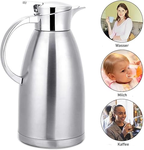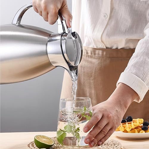 Chesnia Carafe isotherme 2,3 l en acier inoxydable - Carafe isotherme à double paroi - Pour garder le thé, le lait et les boissons chaudes ou froides
