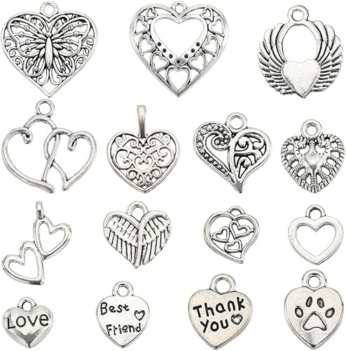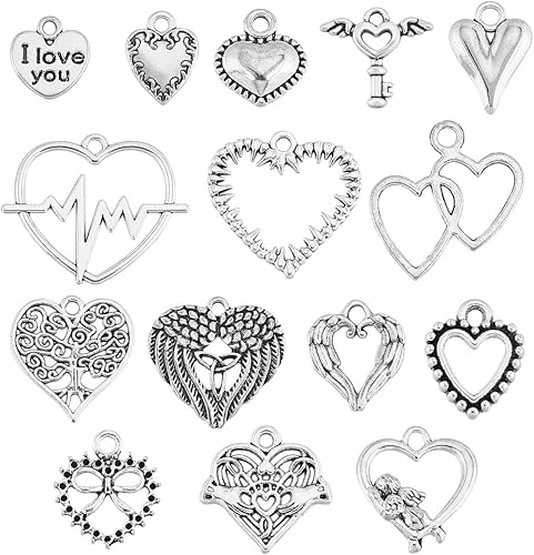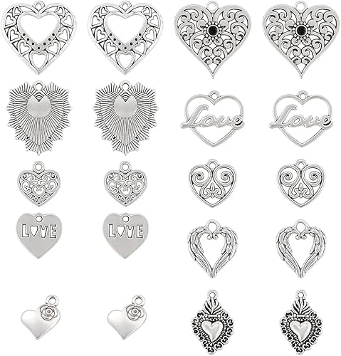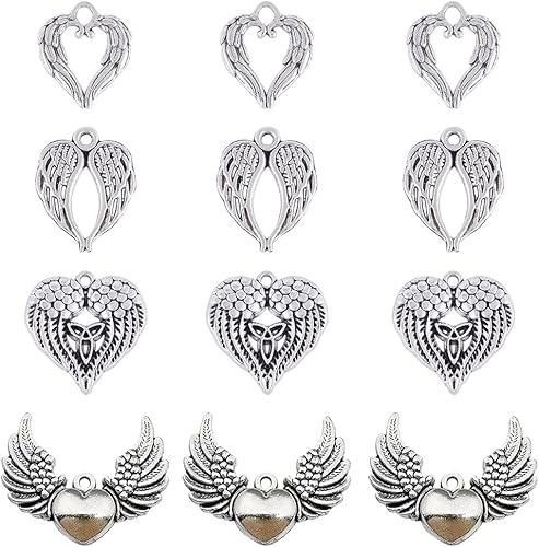 SUNNYCLUE 1 boîte 40 pièces Breloques Aile D'Ange en Vrac Breloque Aile de Coeur Tibétain Antique en Alliage D'Argent Breloque Coeurs Saint Valentin pour la Fabrication de Bijoux Breloques Bricolage A