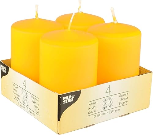 PAPSTAR 4 bougies piliers Ø 50 mm, 80 mm, jaunes