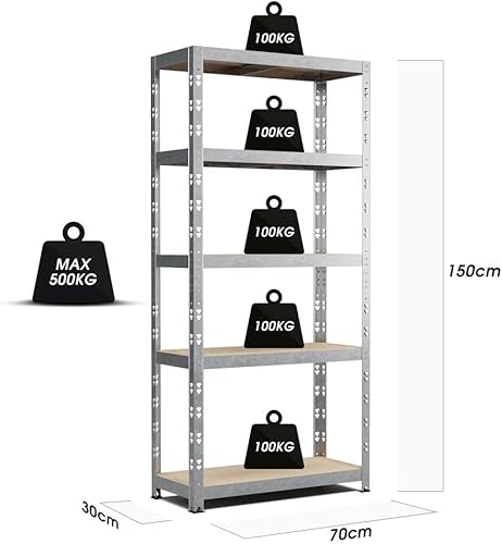 BLUMIE Etagère de rangement modulable et polyvalente pour atelier, garage, cave... Charge Lourde max 500kg -150x70x30cm - Gris