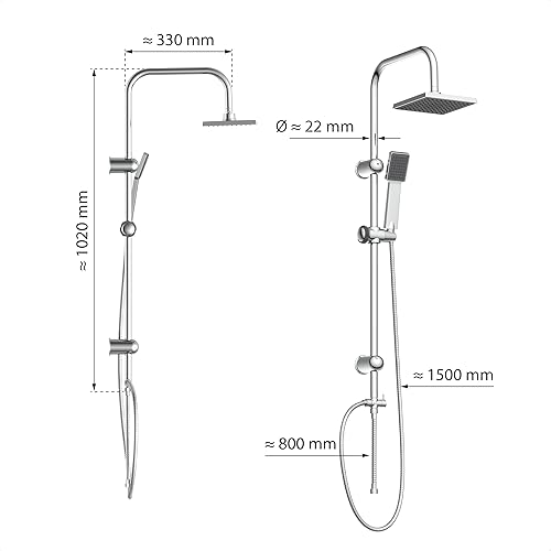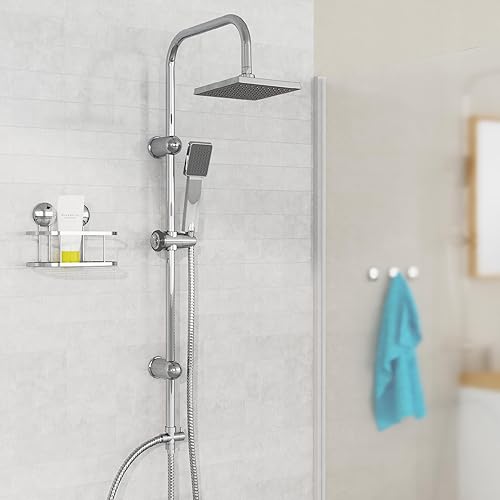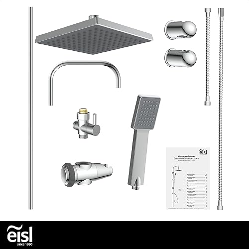 EISL EASY ENERGY DX12004-A colonne de douche, colonne douche sans robinetterie 2 en 1 avec grande douche de pluie et douche colonne de pluie sans robinetterie, chrome