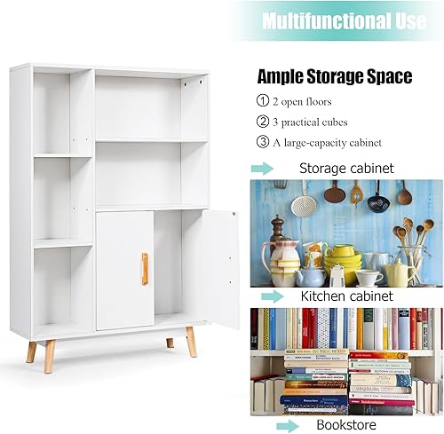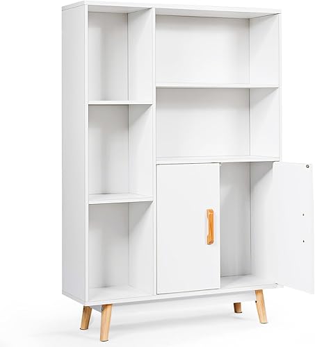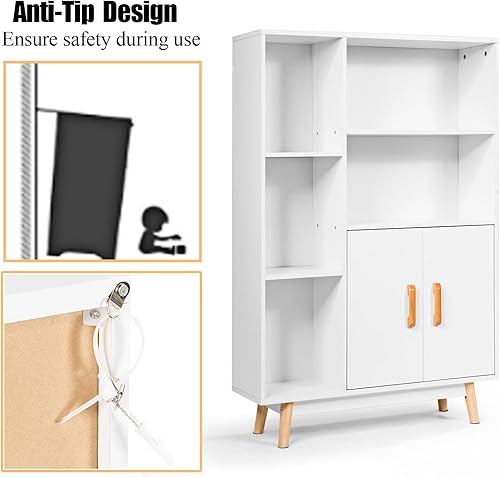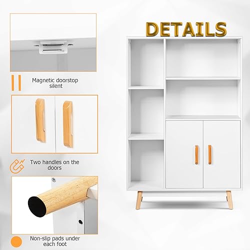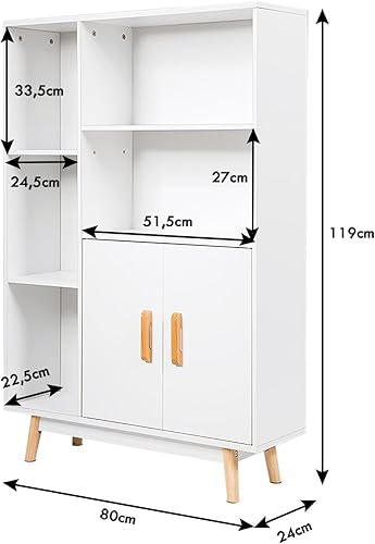 KOMFOTTEU Armoire de rangement multifonction avec 2 portes et 5 compartiments, armoire de rangement avec dispositif anti-basculement, blanc, 80 x 24 x 119 cm