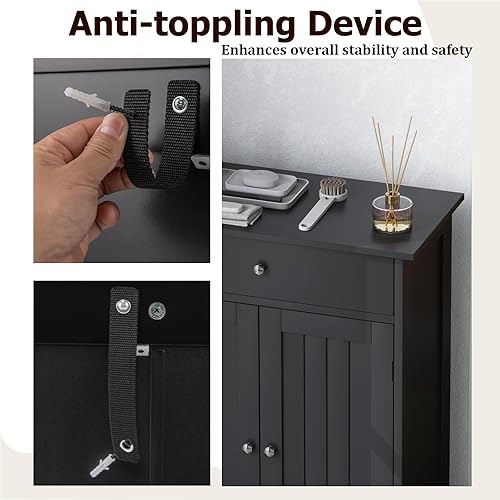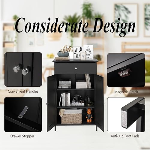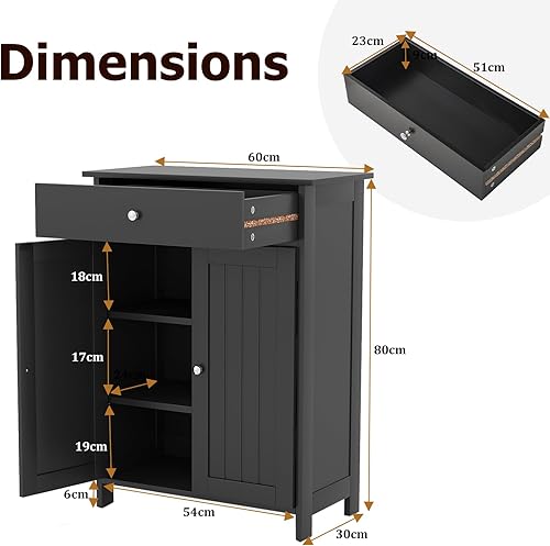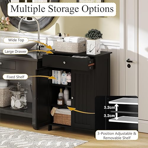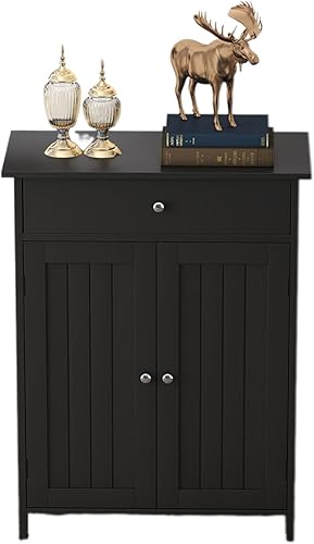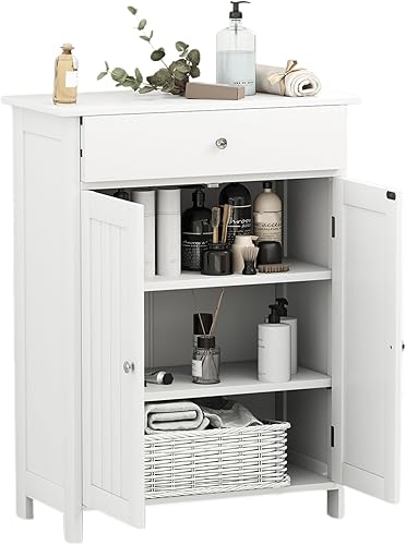 LIFEZEAL Meuble de salle de bain avec 1 tiroir et 2 portes, étagères réglables en hauteur, protection anti-retournement, meuble de rangement indépendant, pour salon, salle de bain (blanc)