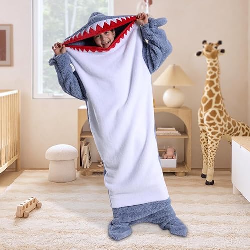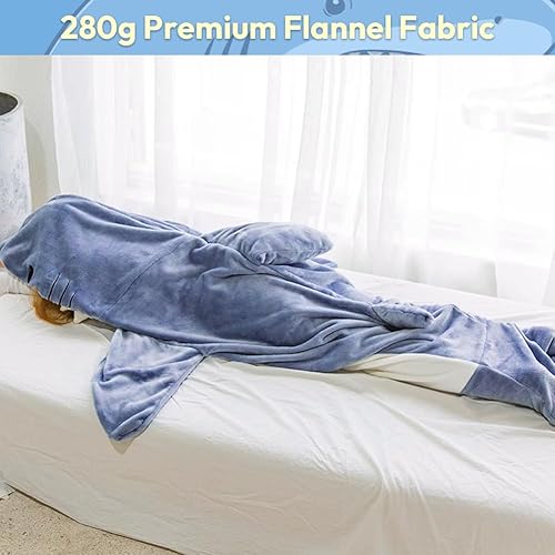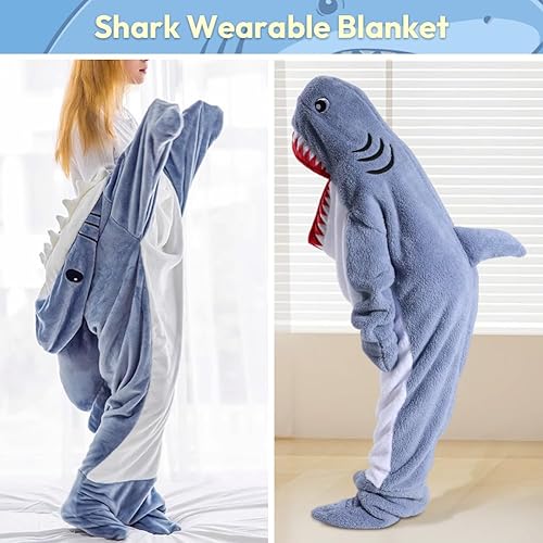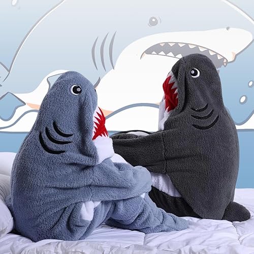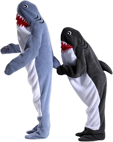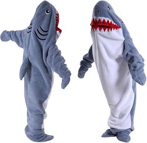 Couverture requin à enfiler - Costume de requin pour adultes et enfants - Sweat à capuche Shark en flanelle super douce et confortable - Couverture portable pour la chaleur à l'intérieur - Onesie de
