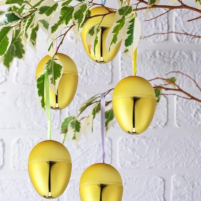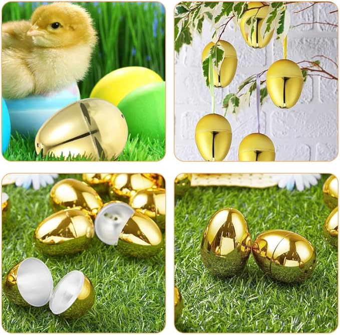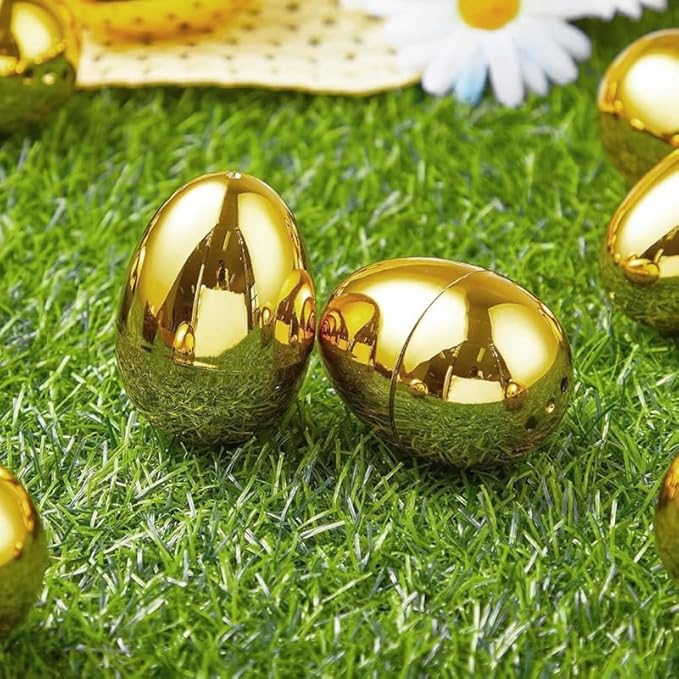 TOBBOMEY 12pièces De Pâques Fillables Dorés Plastique Décoration Et De Fête pour Chasse Aux