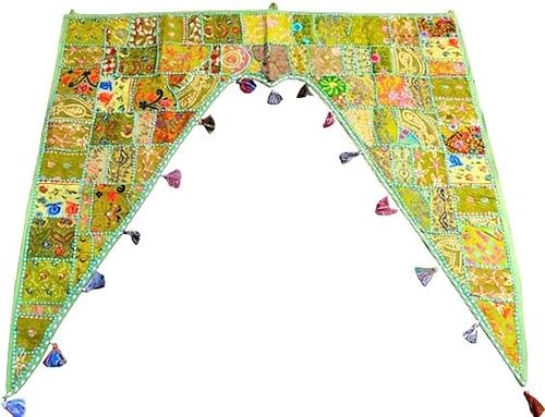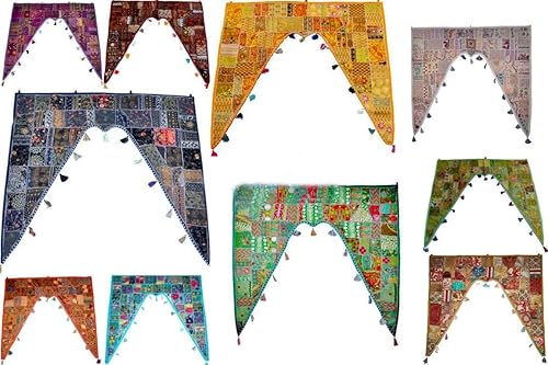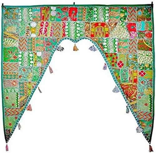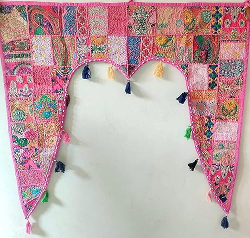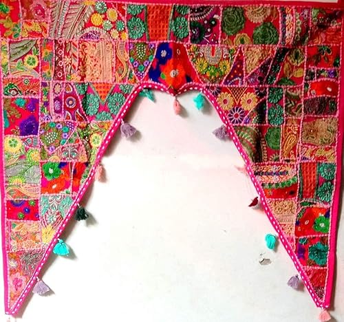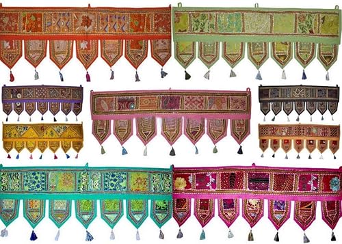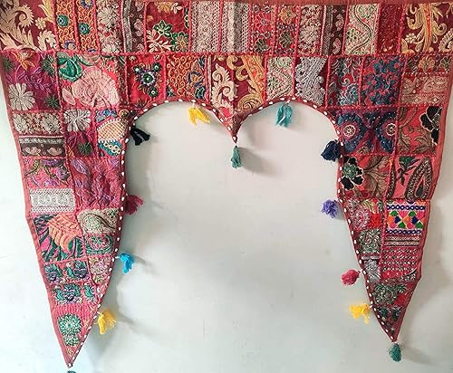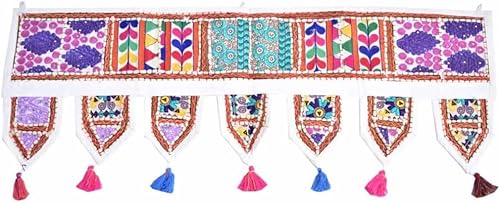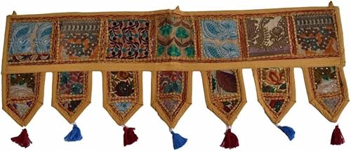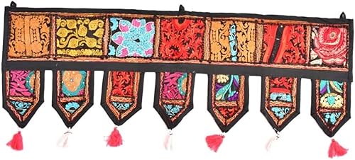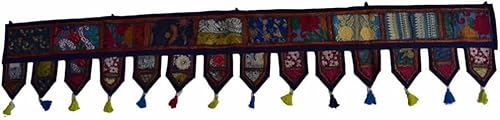 Marusthali Cantonnière de porte brodée à la main en coton style hippie bohème indien indien à suspendre au mur vintage patchwork toran