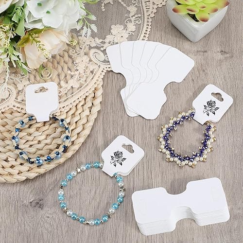 SOFPLATE 200 carte de Présentation de Bijoux Blanche Porte Cartes de Bijoux Papier Pliable Rectangulaire de 3.54 x 1.34 pouces Étiquettes en Carton à Suspendre pour la Vente de Bijoux Colliers Bracele