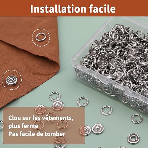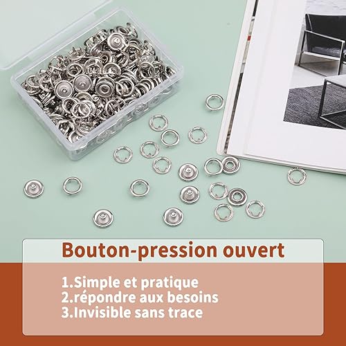 100 Ensembles De Boutons-Pression, Boutons-Pression En Métal Argenté De 9,5 MM Pour La Couture Et L'artisanat, Kit De Fermetures à Pression à Bouton-Pression Ouvert Pour Le Bricolage