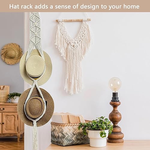 Cintre pour Chapeau en Macramé, Porte-Chapeaux, Rangement de Chapeaux à Large Bord, Support Mural Porte Chapeaux, Porte Chapeaux Mural, Décorer les Murs, Portes, Rangement Chapeau à Larges Bords