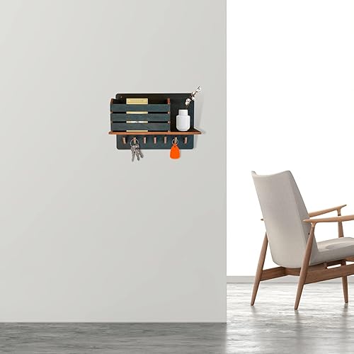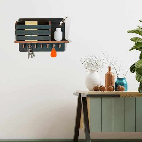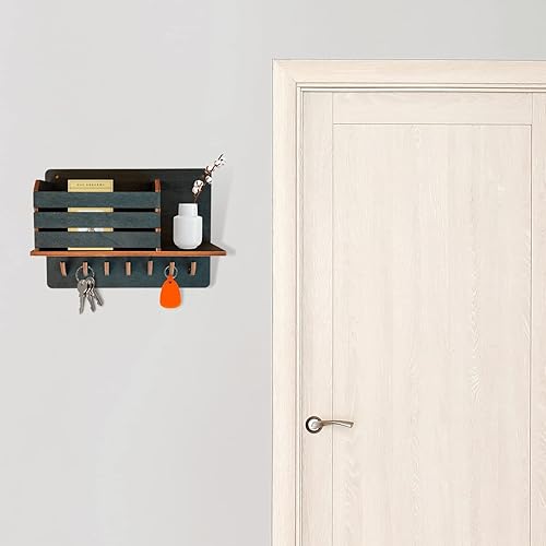 Pekiedo Vide-poche murale en bois, porte-clés murales, entrée moderne, idée cadeau originale, décoration maison, porte objets, accessoires (Noir)