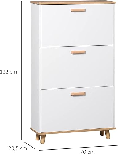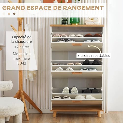 HOMCOM Meuble à Chaussures étagère à Chaussures Style scandinave 3 abattants Aspect Bois - 70 x 23,5 x 122 cm - crème