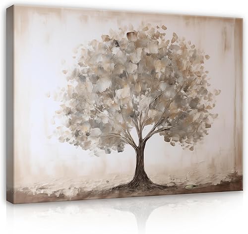 Tableau abstrait beige multicolore arbre de vie multicolore 60 x 40 cm – Impression sur toile moderne Grand format XXL Salon Chambre à coucher Impression d'art mural Image murale sur toile