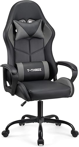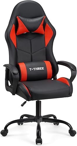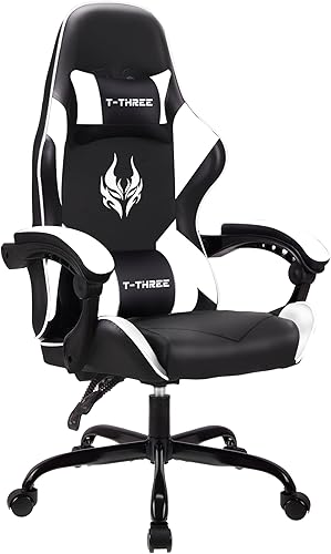 T-THREE.Chaise Ergonomique Haute pour Gaming, Bureau, étude, pivotante et Style Course, avec Soutien Lombaire et appuie-tête réglables, 150 kg, idéale pour Bureau Maison.(Blanc)