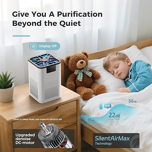 AROEVE Purificateurs d'Air Pour Chambre à Coucher Purificateur d'Air Avec Fonction d'Aromathérapie Pour Animaux Fumée Pollen Pellicules Poils Odeurs Pour Chambre Bureau Salon, DH-JH06A Blanc