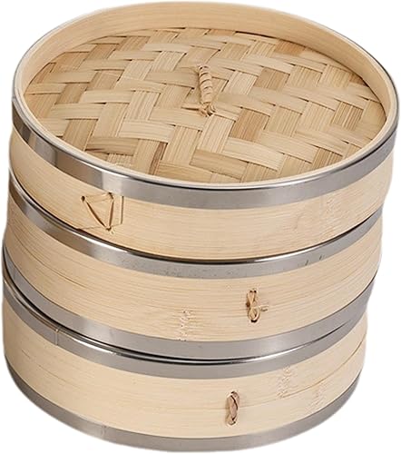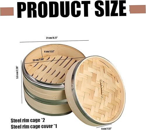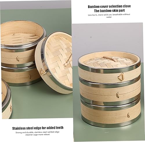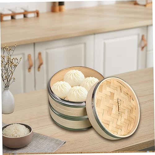 Panier à vapeur panier de vapeur à 2 niveaux avec couvercle 7, 5 '' Bambou Paniers grands pour la cuisson en pot Baozi Pin Sum