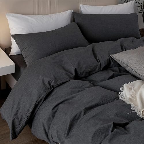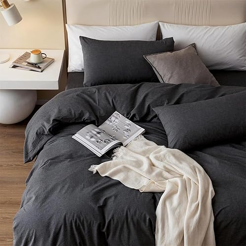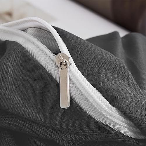 Housse de Couette Coton 140x200cm Gris Coton Parure de Lit Adulte 1 Personne Plus Doux et Plus Confortable Linge de Lit 1 Taie d'oreiller 65x65 avec Fermeture Eclair