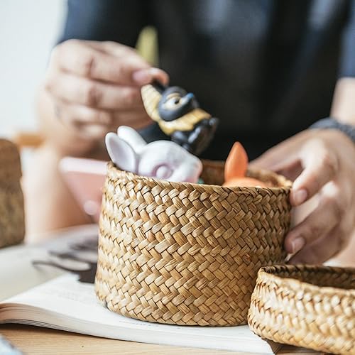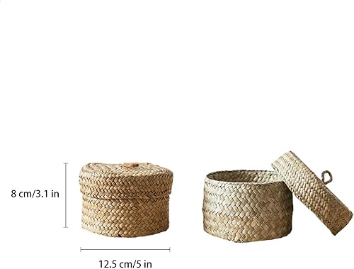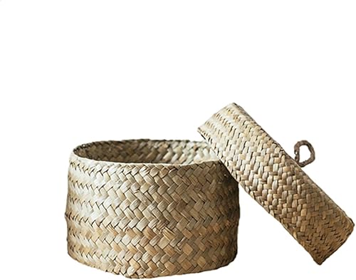 Boite Osier Avec Couvercle, Boîte Ronde En Jonc De Mer, Boîte Ronde En Jonc De Mer Avec Couvercle, Panier En Osier Avec Couvercle Pour Petites, Panier De Rangement En Rotin Avec Couvercle