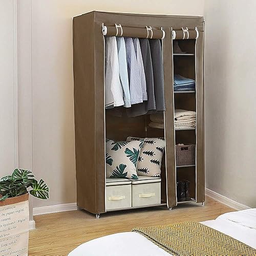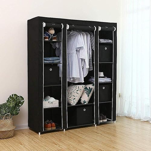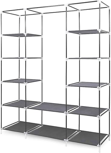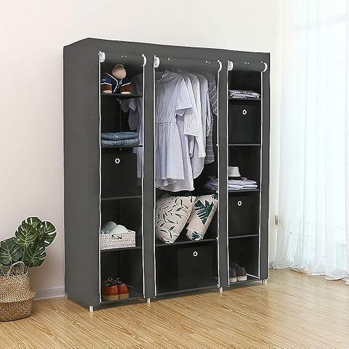 XUANYU Armoire Chambre d'Adulte à Trois Portes, Armoire de Rangement Pliable et Portable, Penderie en Tissus Non-tissé, Armoire à Vêtements avec Une Tringle (Gris, 134×43×172 cm)