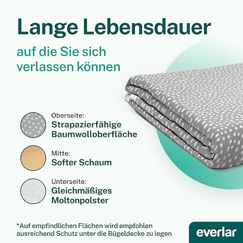 everlar® Couverture de Repassage I Qualité Made in Germany I Tapis de Repassage de Table pour Un Repassage à la Maison & déplacement I 100 x 65cm I Résistant à la Chaleur I Matériau 100% Coton