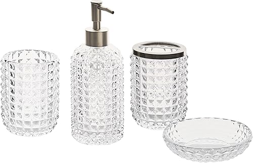 Accessoires de Salle de Bain en Verre Transparent 4 Pièces Glamour et Fonctionnel Tapia