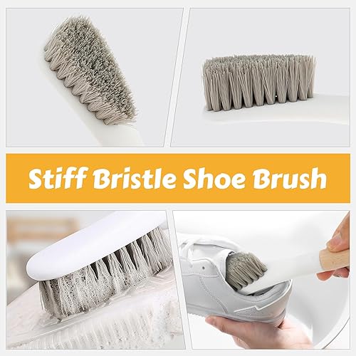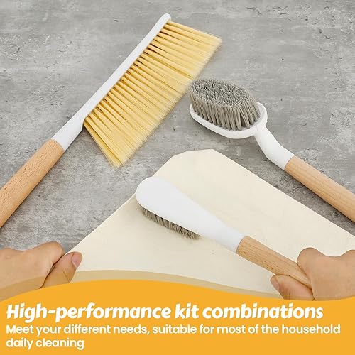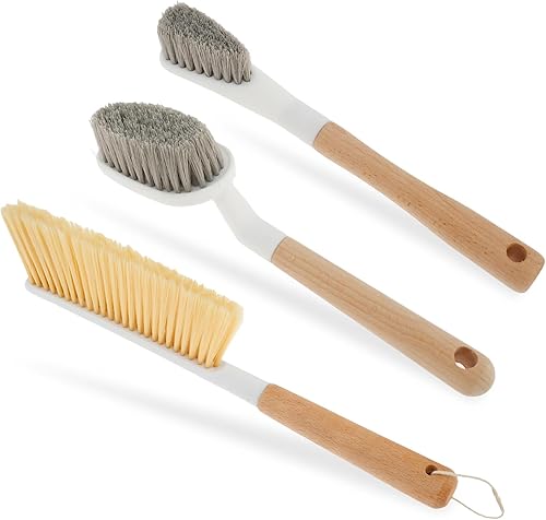 Lot de 3 brosses en bois avec manche - Brosse de nettoyage pour salle de bain - Brosse à chaussures avec poignée - Brosse de lit - Brosse multifonction - Poignée en bois pour nettoyer les salles de