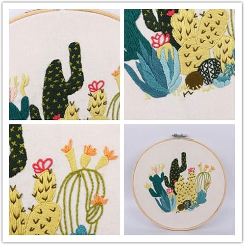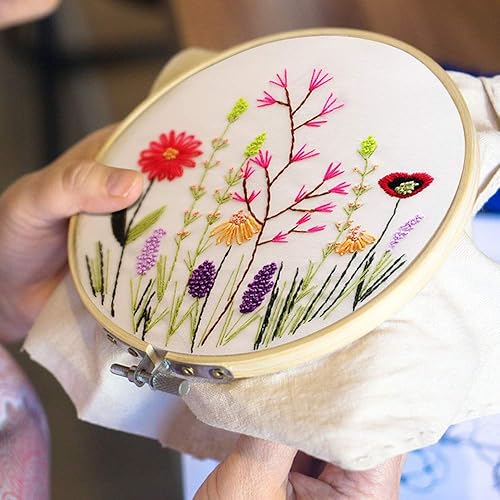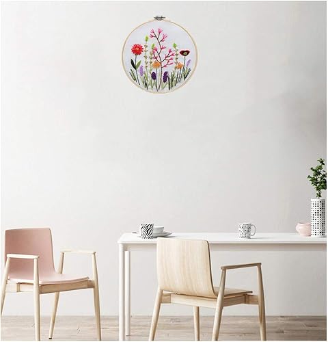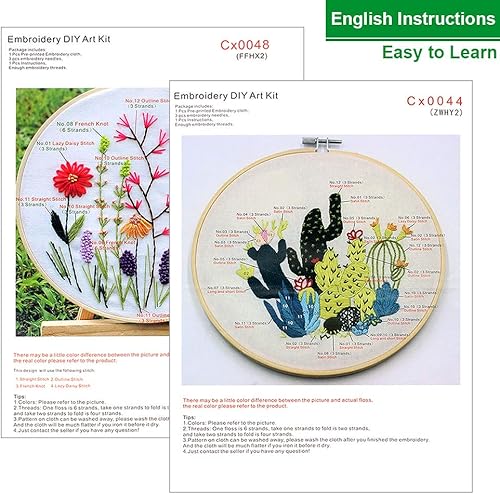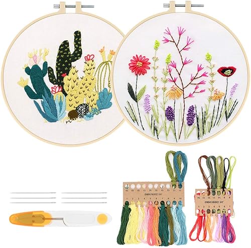 Kit de démarrage de broderie avec motif et instructions, 2 ensembles de kits de broderie pour débutants, kit de point de croix avec cerceaux de broderie, outils de fils de couleur