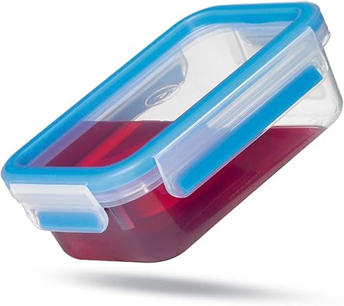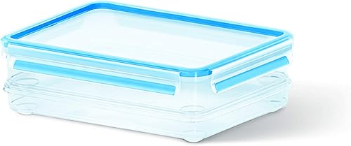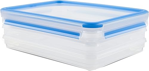 Emsa 508556, 3 Boîtes alimentaires empilables par clip, 3 x 1,0L, 100% hermétique, Transparent/bleu, Clip & Close