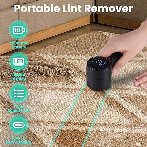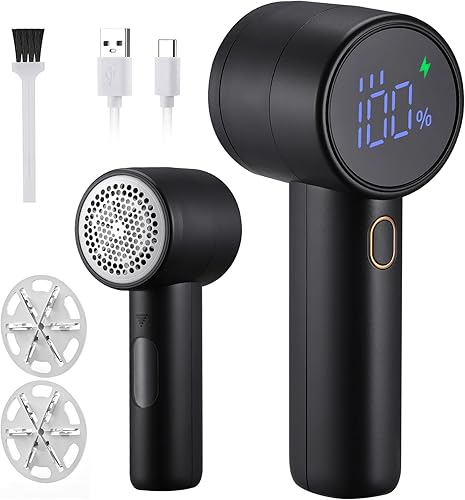 Kssvzz Rasoir Anti Bouloche Vetement Électrique, Rechargeble Rasoir Vetement Anti Peluche, Écran LED Coupe Bouloche Appareil, 3 Vitesses Ajustables Deboulocheur avec 2 Lames Remplaçables