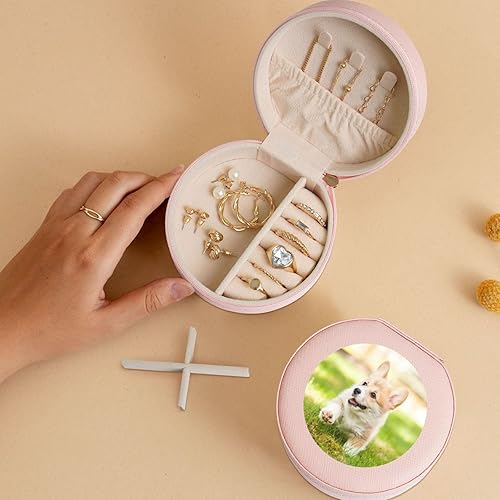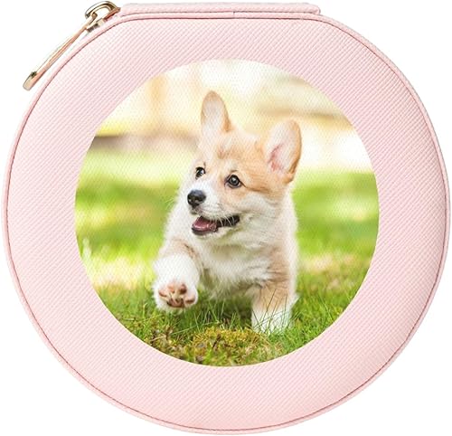 HKHLHLH Corgi Boîte à bijoux ronde compacte pour organiser colliers, boucles d'oreilles, bagues et bracelets