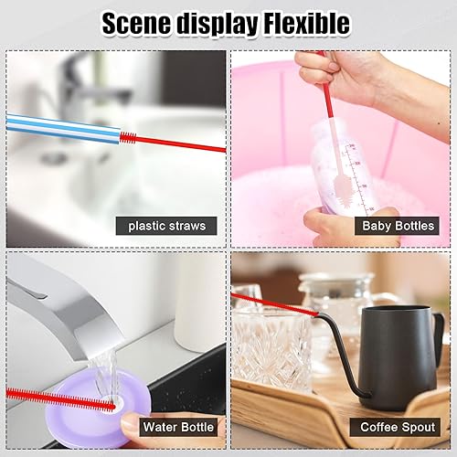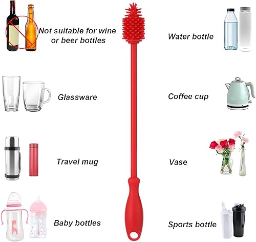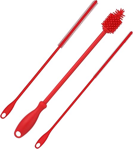 3 Nettoyeurs Paille et Brosse Bouteille, Brosse Nettoyage Paille Silicone Outil Nettoyage Bouteille Longue Réutilisable sans BPA Accessoires Lavage Bouteille Flexibles pour Verrerie (Rouge)