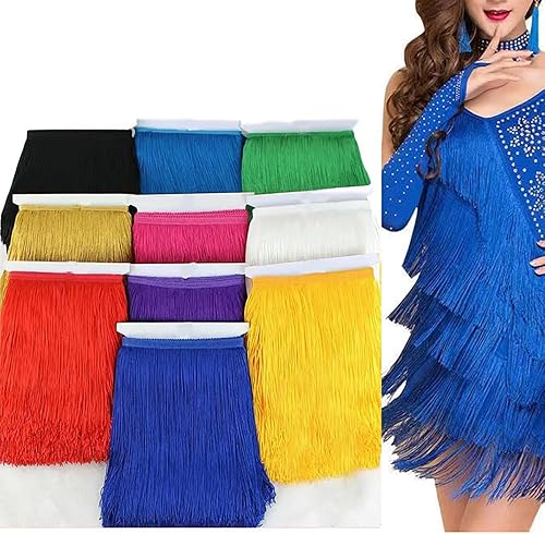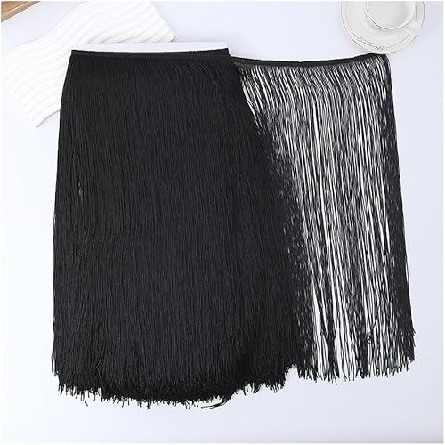 BrightGlow Bordure à franges de 50 cm de large en polyester - Bordure à franges de danse - Bordure à franges à coudre - Ruban décoratif pour vêtements - Artisanat - Noir