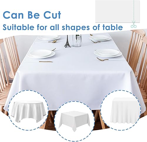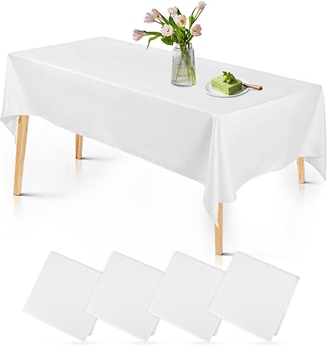 4 pcs Nappes Blanche Jetables, Nappe Rectangulaires137 X 274 cm, Nappe Jetables Effet Tissu Impermeable, Nappe de Table pour Anniversaire,Fête, Mariage, Barbecue,Nappe Intissé Blanche