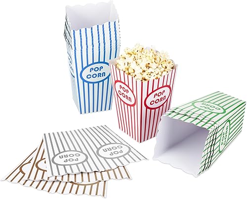 Relaxdays Sachets de Pop-Corn, Lot de 50, à Rayures, rétro, cinéma, Accessoires pour soirée Film, Carton, Multicolore