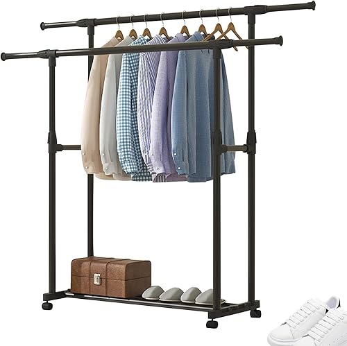 Porte Vêtements Pliable Robuste, Portant À Vêtements Portable Sur Roulettes, Porte-vêtements Autoportant Pour Manteaux, Double Cannes À Vêtements Autoportantes, Support Pour Vêtements À Suspendre