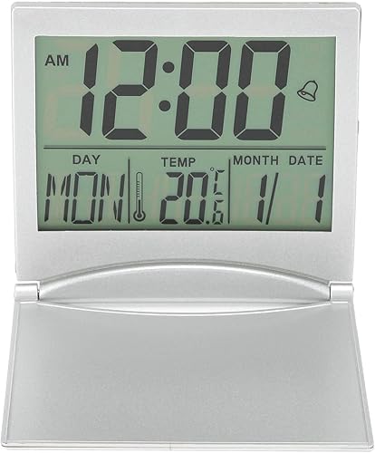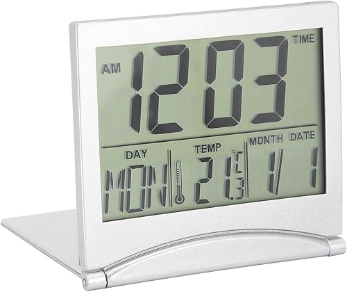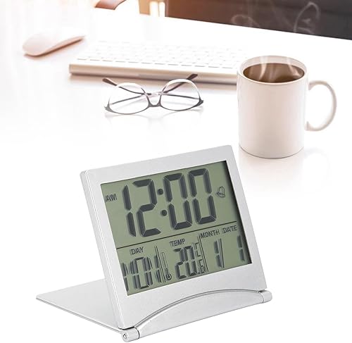 Acouto Horloge de Bureau, Réveil électronique de Bureau Compact Calendrier Pliable Horloge de Minuterie de Température pour Le Voyage