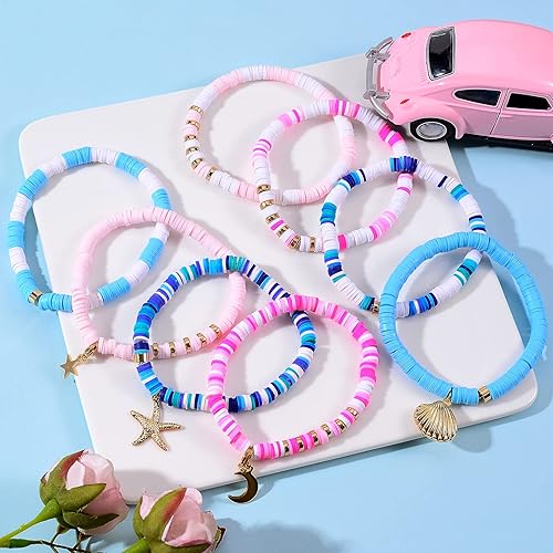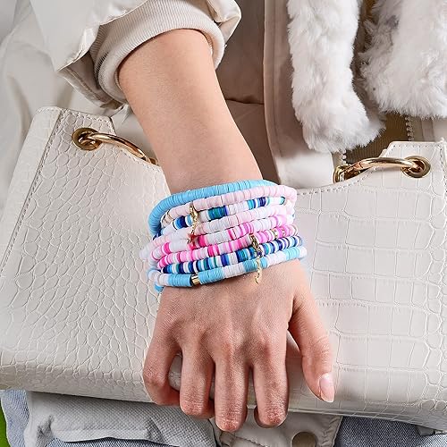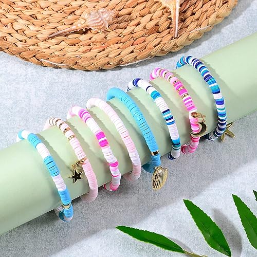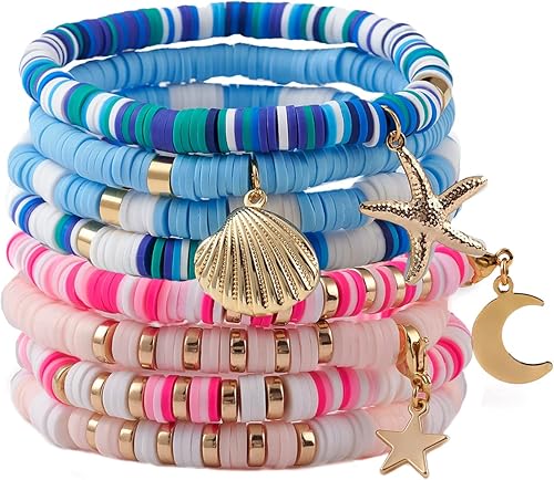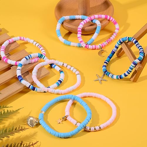 WEWAYSMILE Heishi Lot de 8 bracelets de surfeur en argile polymère arc-en-ciel avec perles et bracelet élastique, Argile