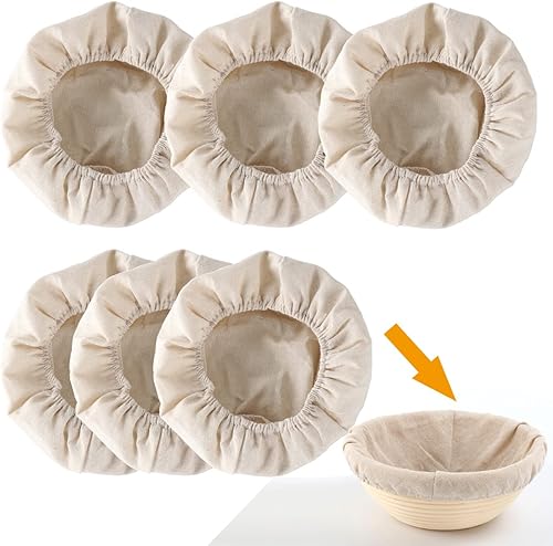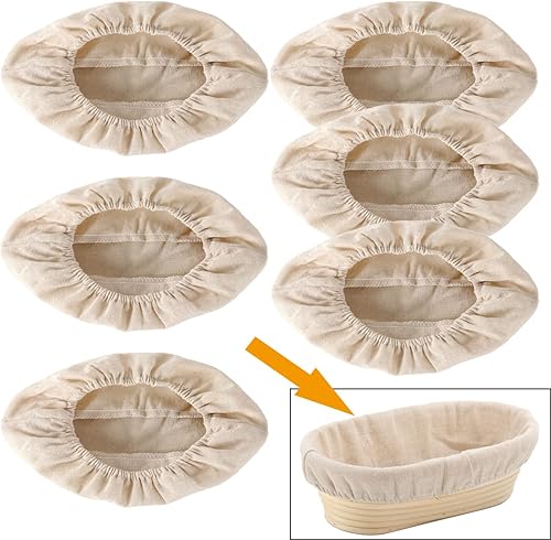 Lot de 6 paniers à pain en rotin pour panier de cuisson à pâte - Tissu résistant au levain et aux banetons - Panier de fermentation en lin pour fournitures de pâtisserie (ovale de 26 cm)