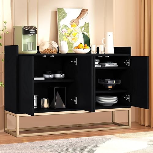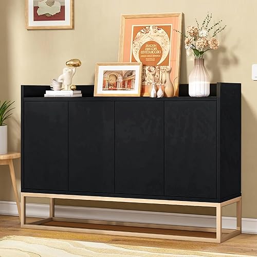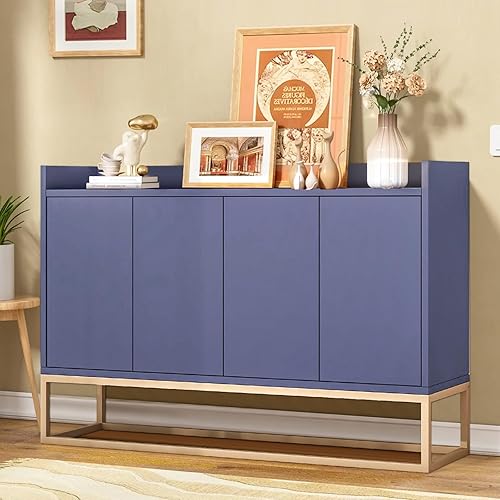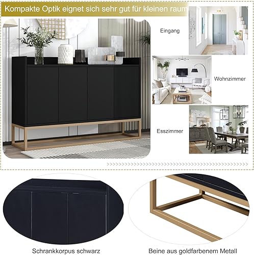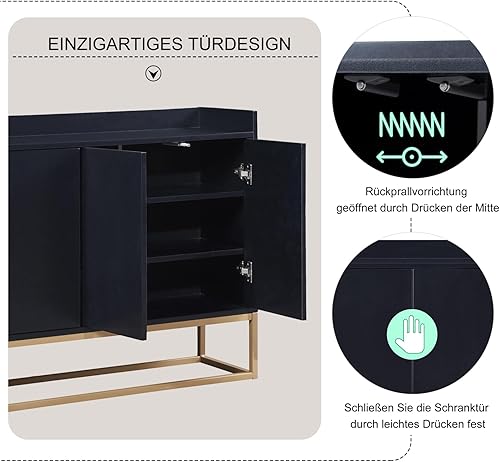 EABYMOR Buffet blanc à 4 portes sans poignée - 120 × 30 × 80 cm - Armoire de rangement moderne - Étagères réglables - Buffet pour salon, salle à manger et cuisine - Blanc