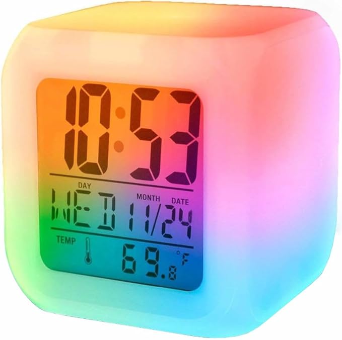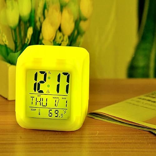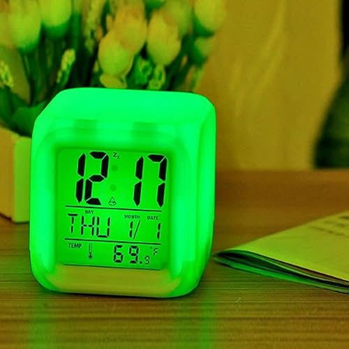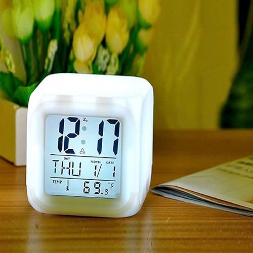 Retoo Réveil Numérique, Rétroéclairage LED 7 Couleurs, Écran LCD, 8x8x8cm, sans Fil, Fonction Thermomètre, Petit Cube pour Chambre À Coucher, Réveil De Chevet avec Lumières pour Adultes Et Enfants