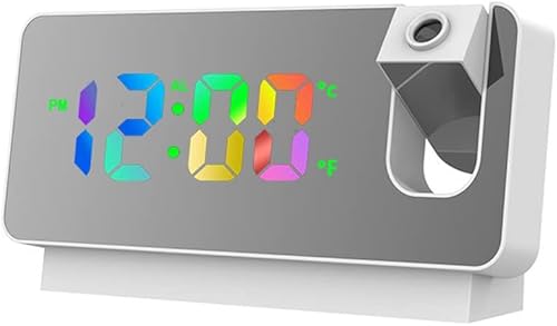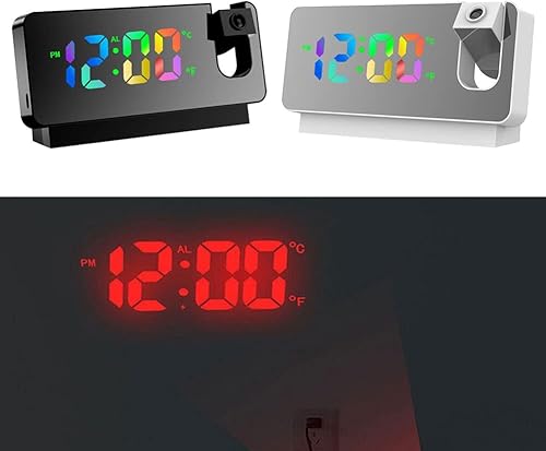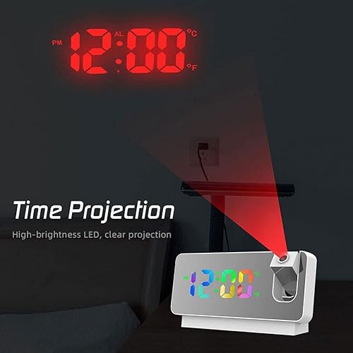 ZYWUOY Réveil à Projection, Projecteur Numérique LED Muet, 180° Grand Angle De Projection Double Réveil avec Fonction Snooze, 7,3 Pouces Reveil Projecteur Plafond pour La Maison, Charge USB, 12/24H