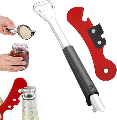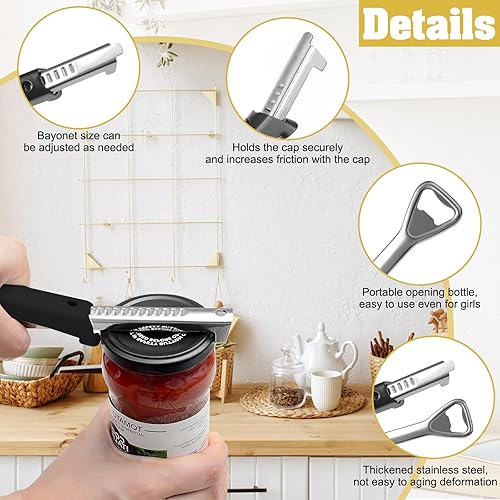 LongZYU 2 Pièce Ouvre Bocal sans Effort pour l'Arthrite Ouvre Boite de Conserve Acier Inoxydable Can Opener Manual Décapsuleur à Poignée Réglable pour Les Personnes Âgées et Mains Faibles