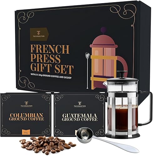 Cadeaux d'anniversaire pour papa – Cadeaux à café pour homme | Cafetière, cafetière à piston française, 2 x café moulu, colombien et guatemala, cuillère | Cadeaux pour papa de la part de sa fille