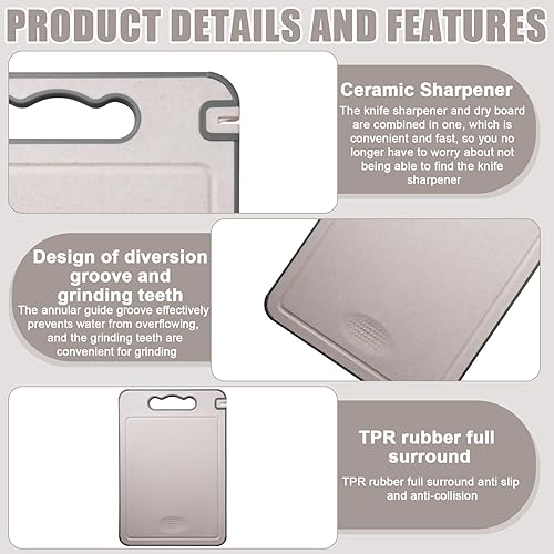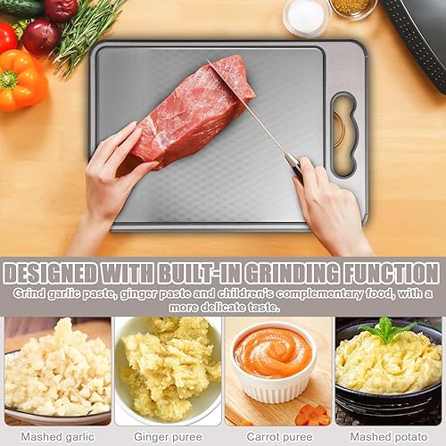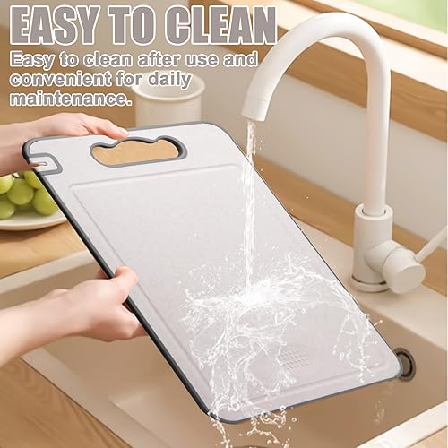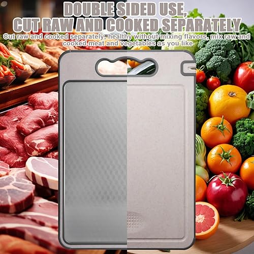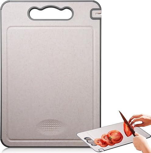 Asfrode Planche À Découper Double Face : Planche À Découper en Paille De Blé Et Acier Inoxydable 304 Antibactérienne, Hygiénique pour Cuisine Et Camping (45 X 31cm/Couleur Avoine)